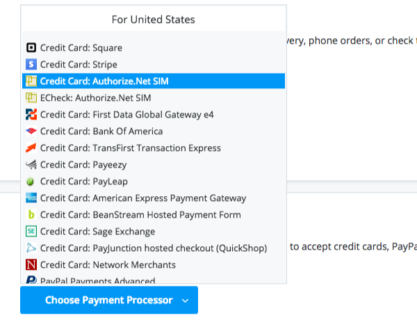 - Select Credit Card: Authorize.Net SIM from the drop-down menu.