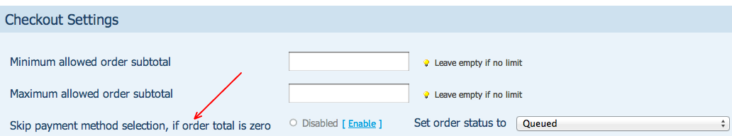 Additionally, you can configure your store so that it will automatically set such orders to either "Accepted" or "Queued" status. What is it for? If a free order needs some manual verification before shipping (or sending download links of your promotional files), then it would be convenient to initially assign the 'Queued' status to such orders - you'll be able to check an order and switch it to 'Accepted' or 'Declined' status manually. On the other hand, if no verification is needed, let system automatically switch the status to 'Accepted' for the free orders. In this case, it will send the download links of your free promotional files automatically. In order to configure it, please choose the initial status you want in the 'Set order status to' selector next to the "Skip payment method selection, if the order total is zero" option in your control panel.