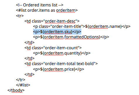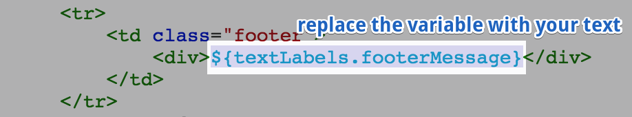 You can also use this method for customizations. For example, you can change the default footer message from "Thank you for your order!" to "Thank you for choosing us!" by replacing the variable ${textLabels.footerMessage} with the wording "Thank you for choosing us!" in the template. ​
