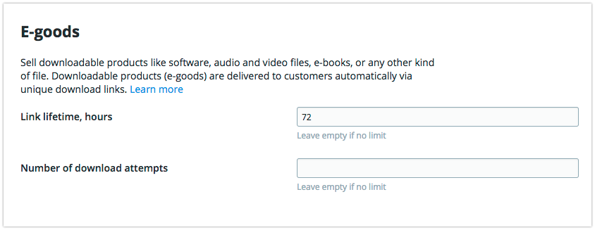 Digital products (e-goods) do not require physical shipping and are delivered to customers online – the buyer receives an email notification with a link to download the purchased item.