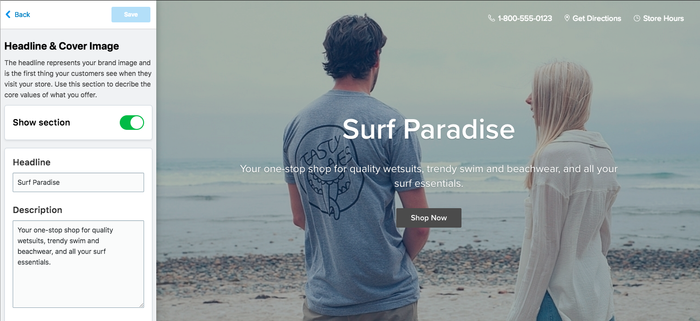 Editing Shop Now Storefront content