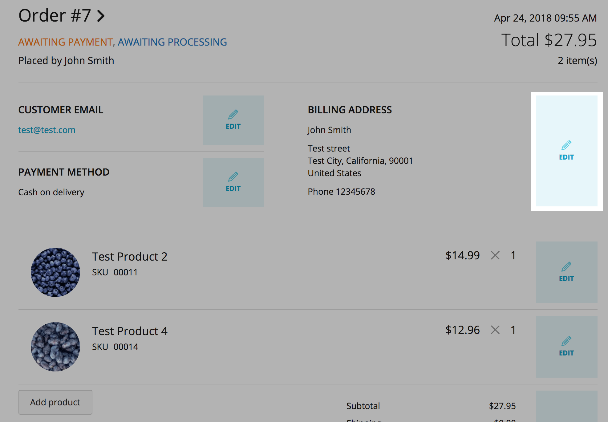 - Click Add product.