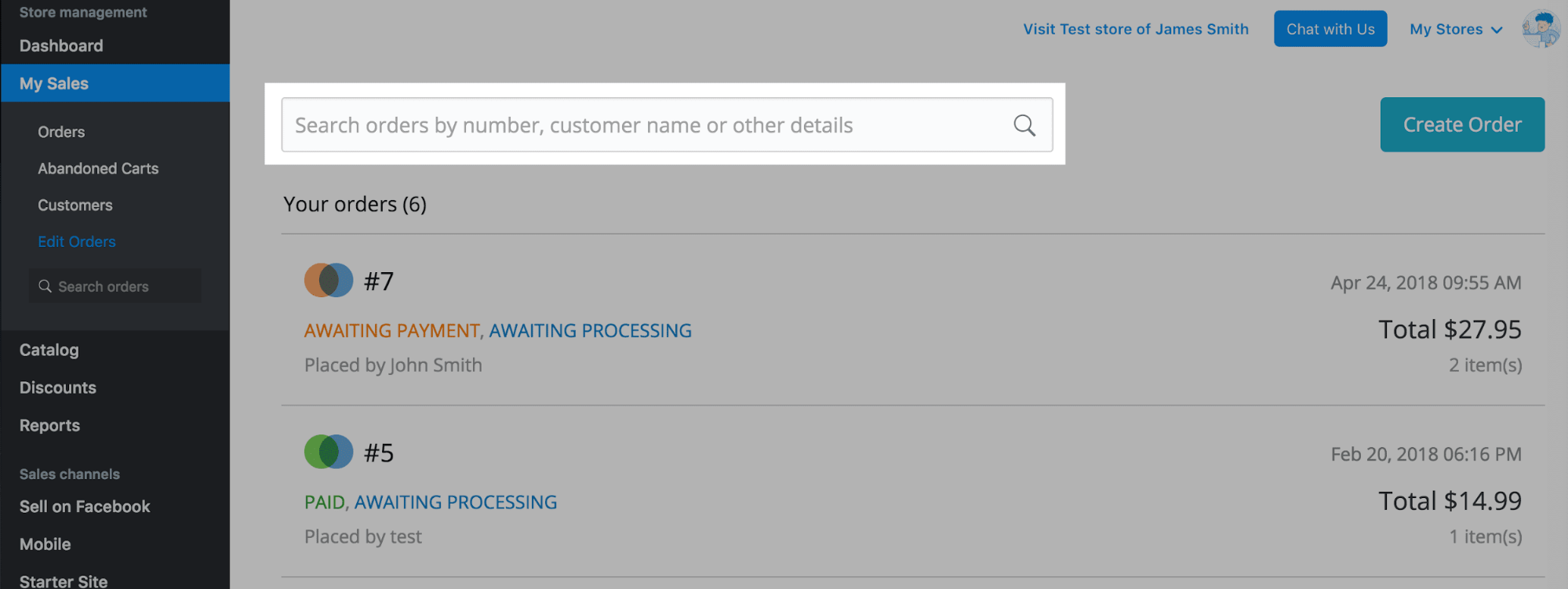- Click the order you want to update or search your sales by order number, customer email, items names or other details.