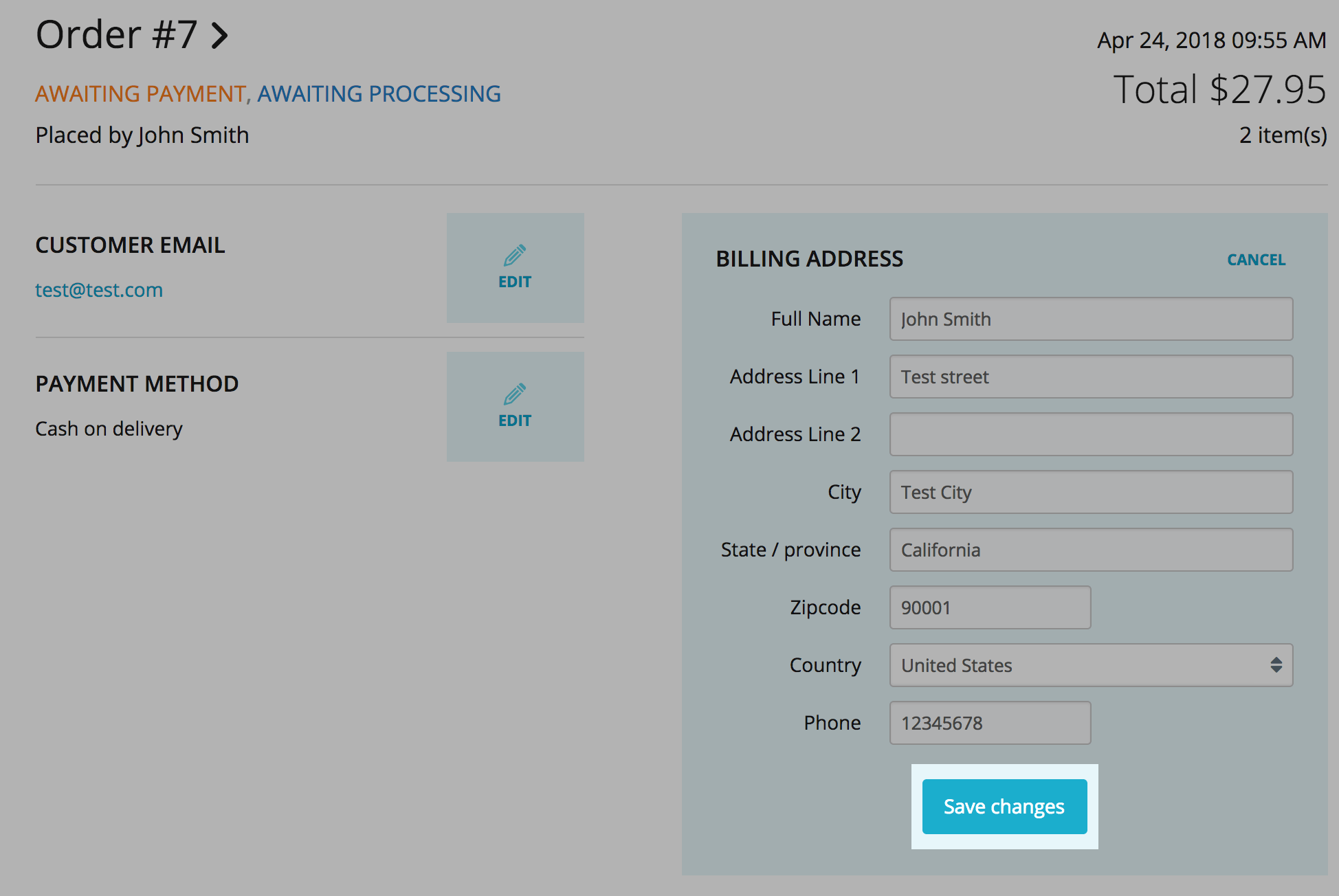 - When you have found the order you want to change, click the pencil icon next to the detail you want to edit: