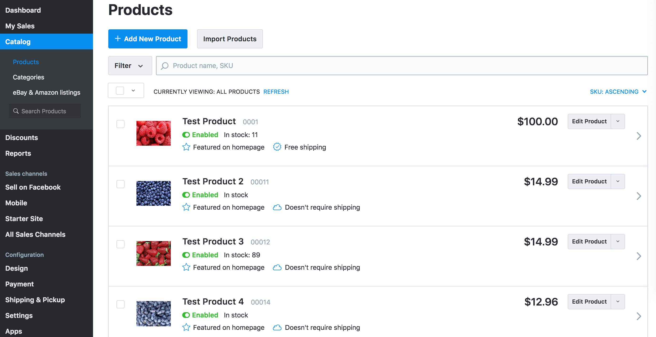 You can add, view, manage and update your products in your store Control Panel → Catalog → Products: