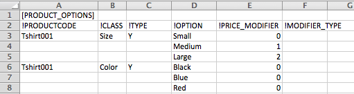 4. If we need to import options for several products described above at the same time, we just put all options description in the same file one under another: