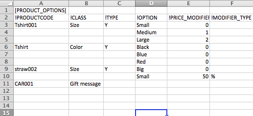 NOTE: Don't forget to set "0" in "Price modifier" field, if the option doesn't affect the price. Empty value is not acceptable for this column.
