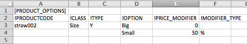 When this file is imported (see the original file in Attachment - import_options2.csv), products with SKU = straw002 will get new option "Size" with 50% discount for "Small" variant