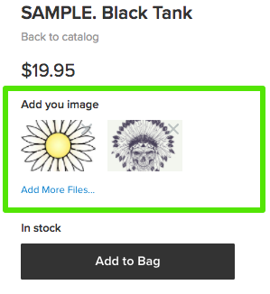 It can be achieved with the special type of product options - 'Upload file'. In your control panel (Catalog → Products → Product management page → Options), you can add an 'Upload file' field to the products that require such attachments, so that a customer will be able to upload their files on the product details page before adding a product to the cart. You can also make that field required, this way your customers will only be able to put the product into the bag after they attach at least one file to that option. In the storefront, it looks like this: