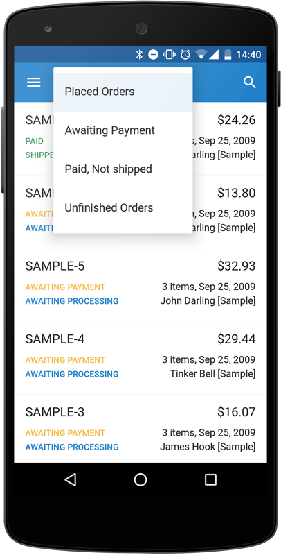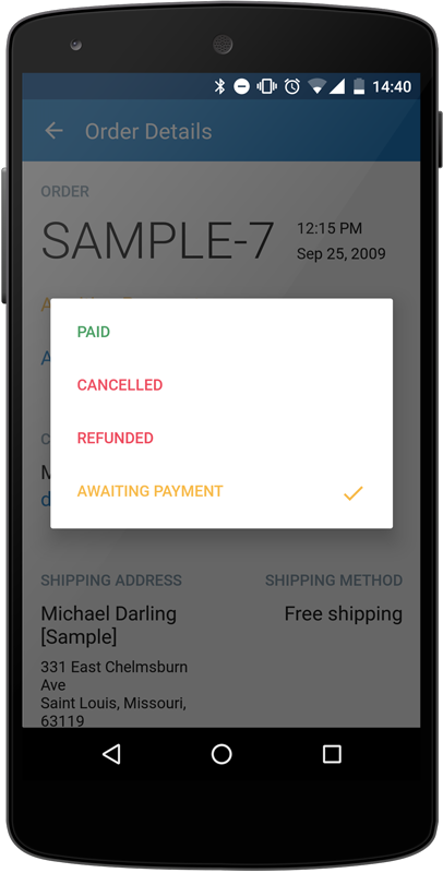 5. Tap on the order status and choose new status from the popup menu: