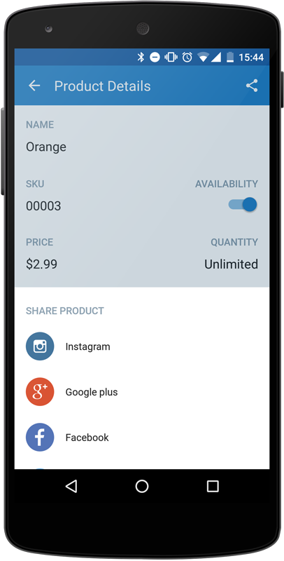You can share your products directly to your social media pages using Mobile app for Android.