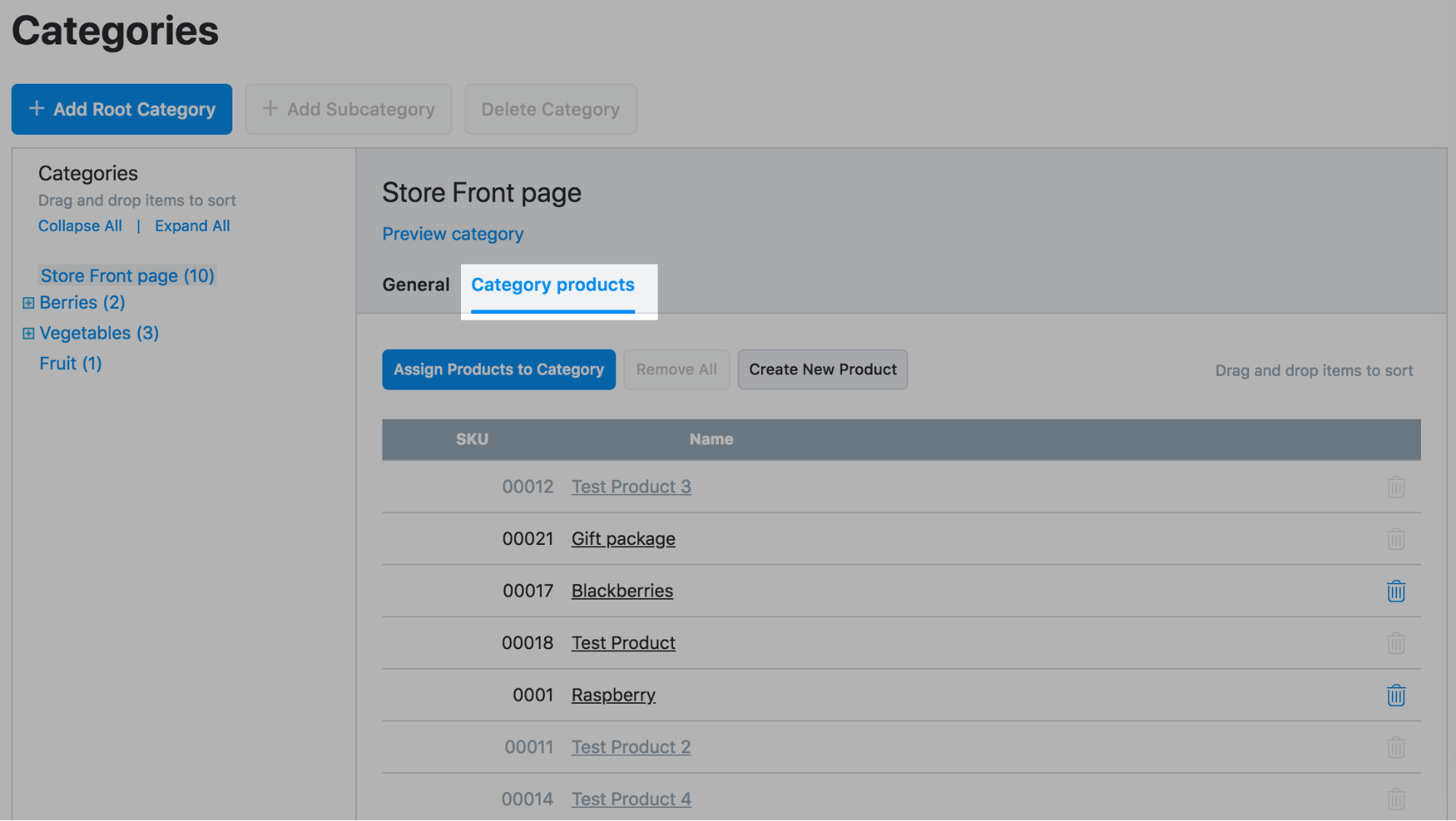 - Click the trash icons next to the products you'd like to remove from the Store Front Page: