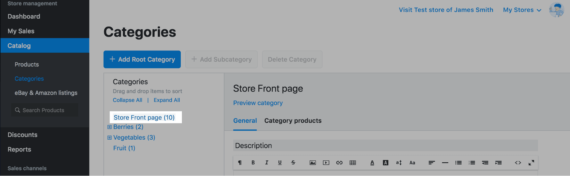 - Go to your store Control Panel → Categories,
