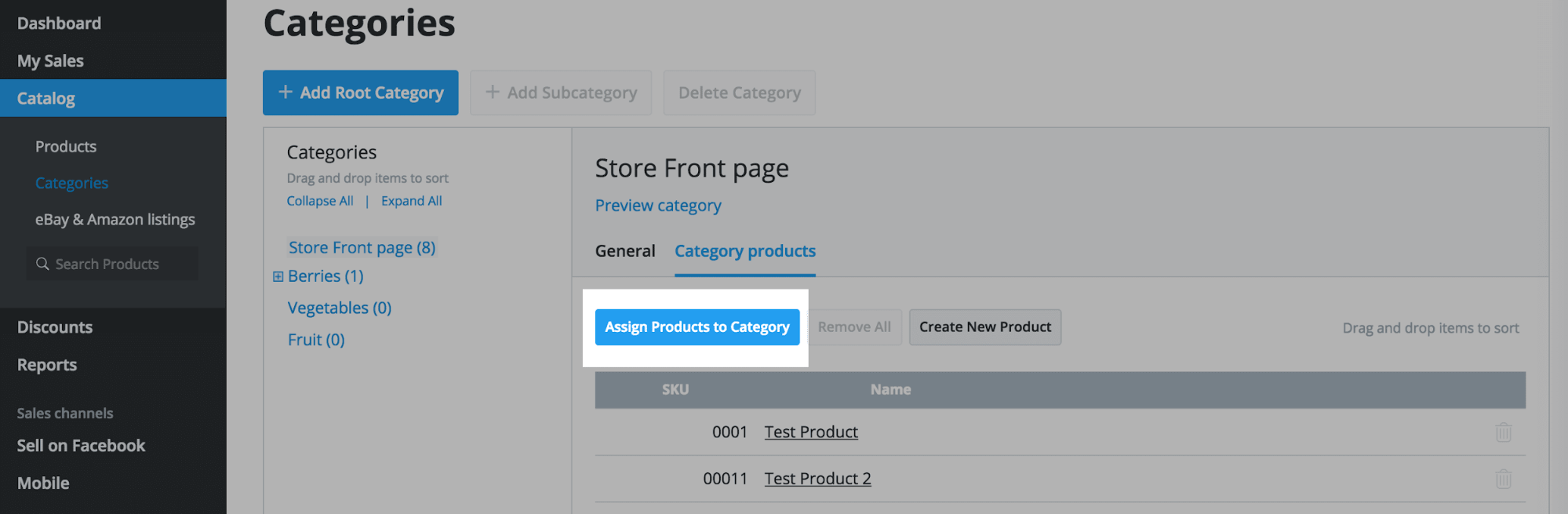 - Click Assign Products to category: