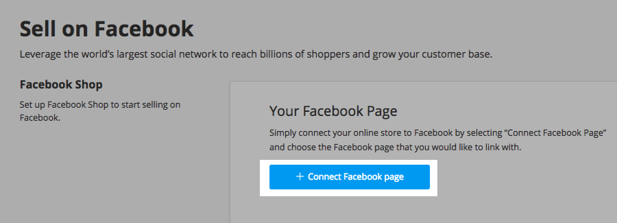 - Go to your Control Panel → Sales Channels → Sell on Facebook and click Connect Facebook page: