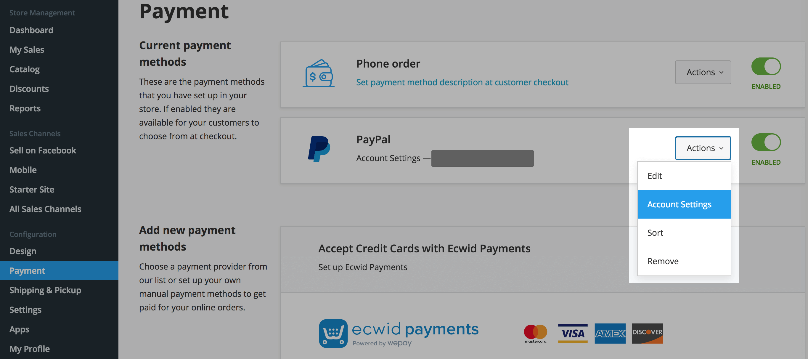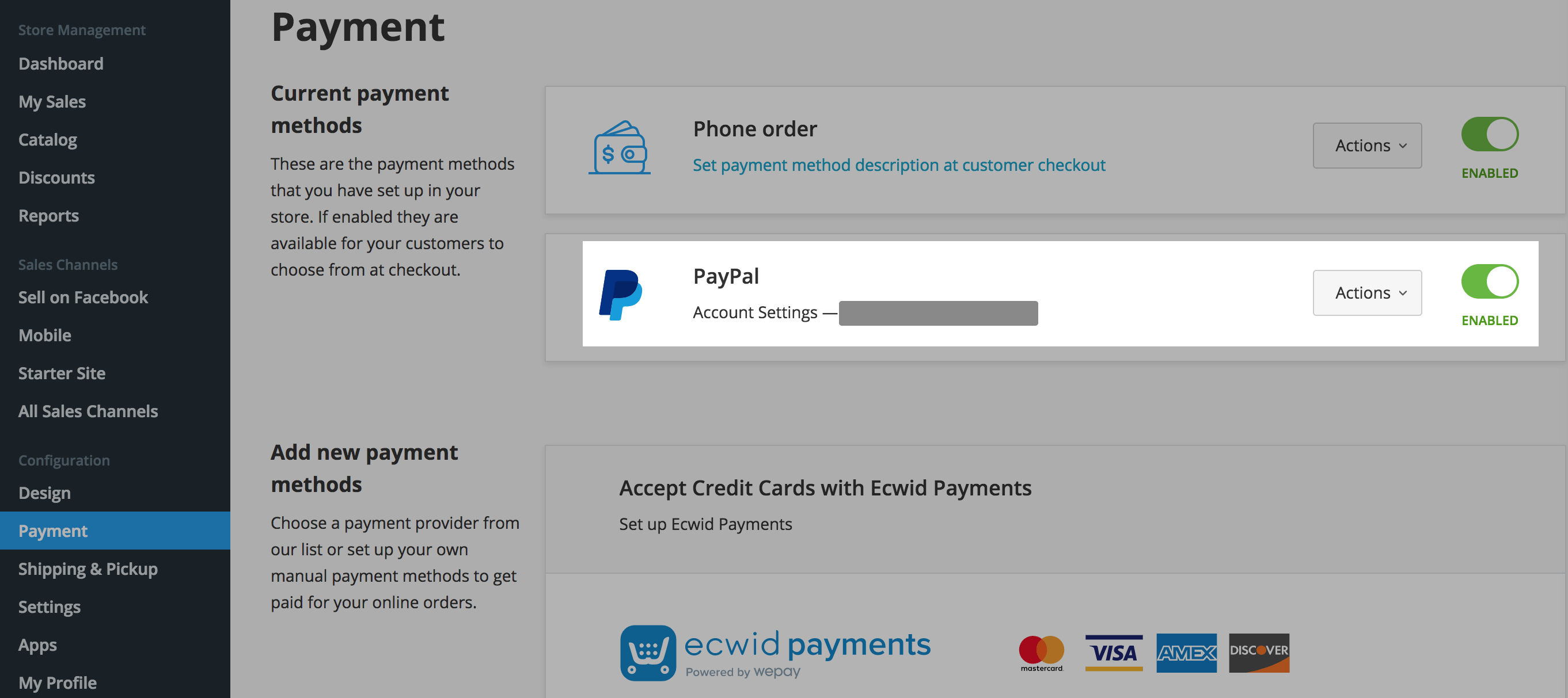- Click Actions next to PayPal.