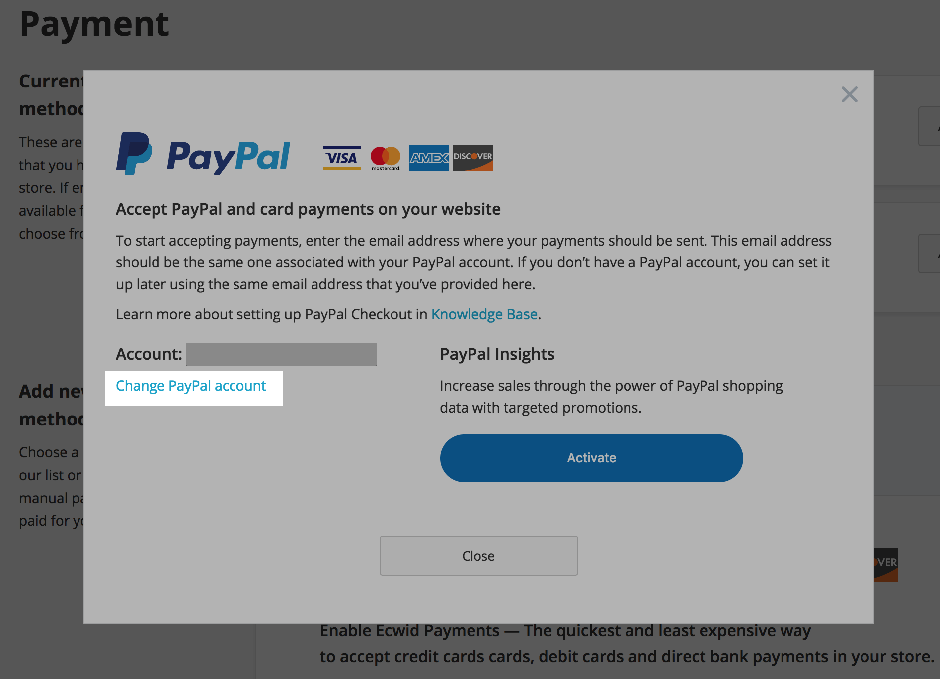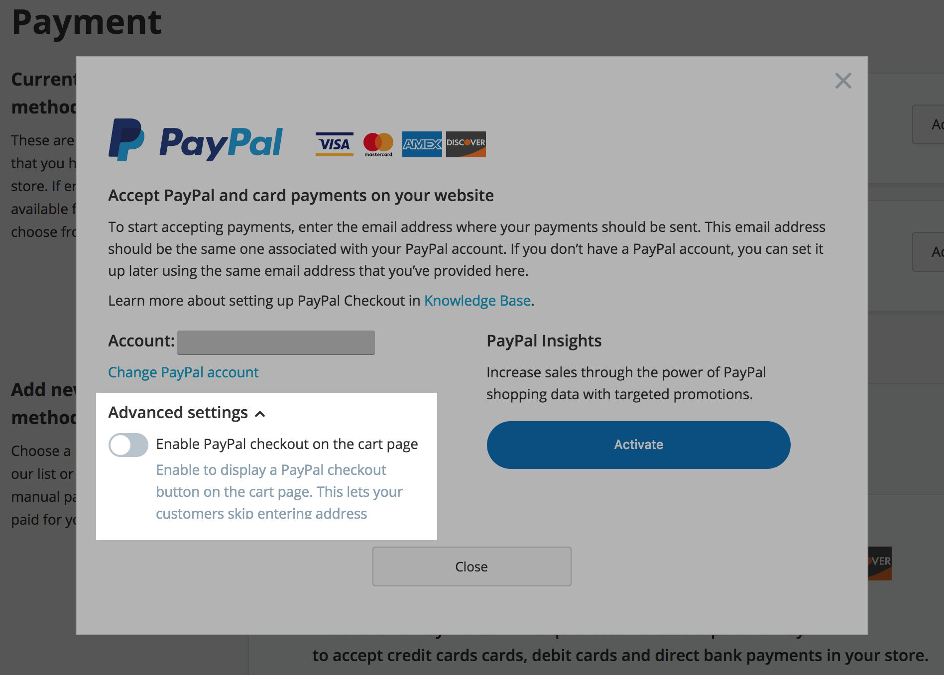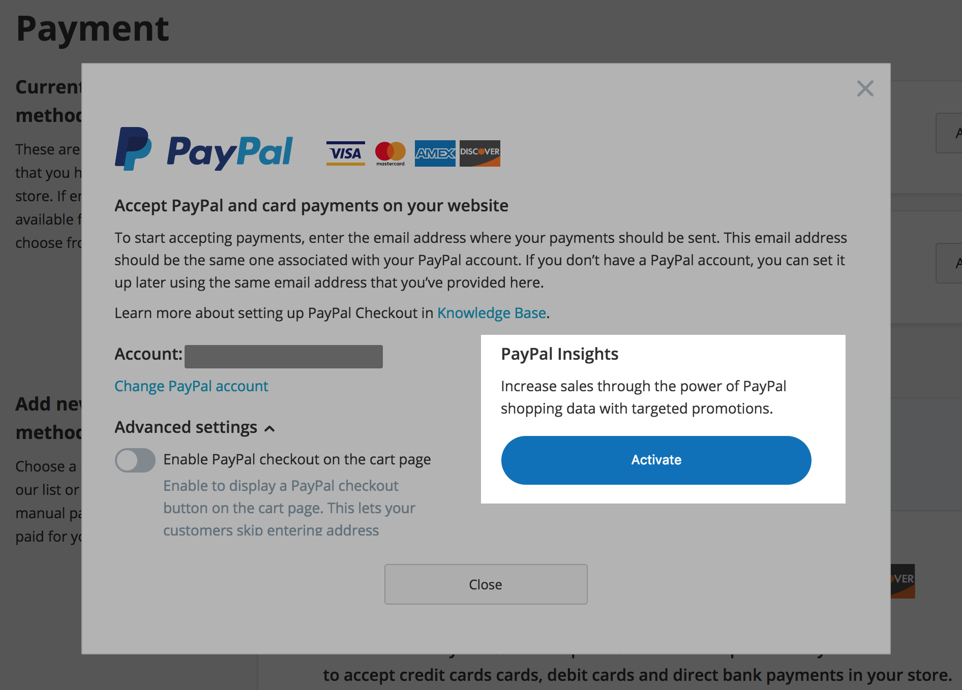 - Click Activate under PayPal Insights: