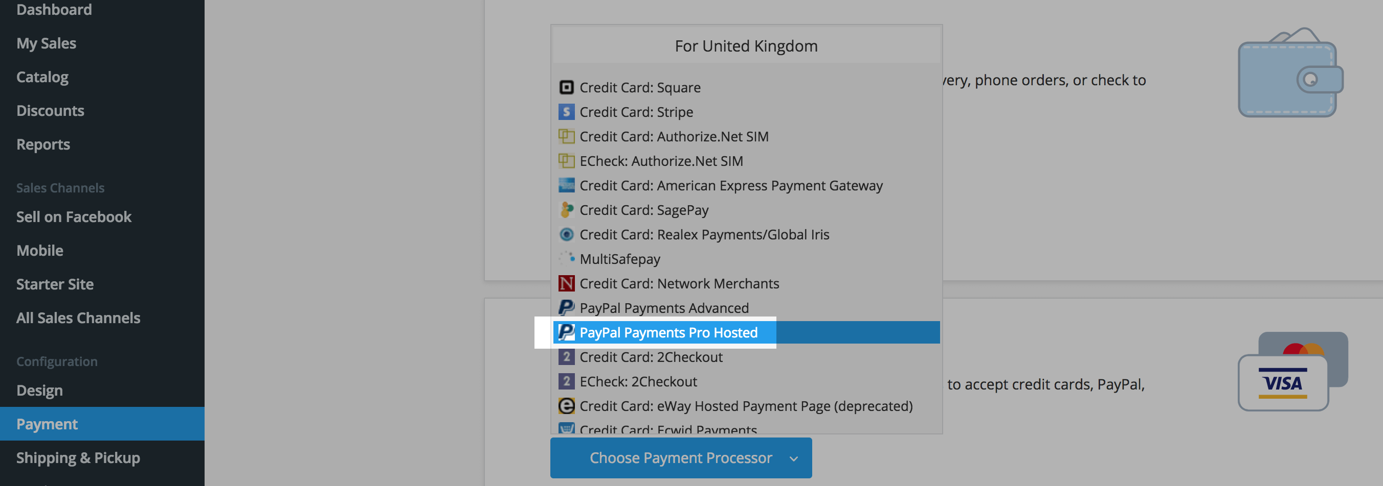 - Click Choose Payment Processor and select PayPal Payments Pro Hosted: